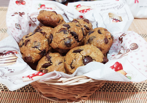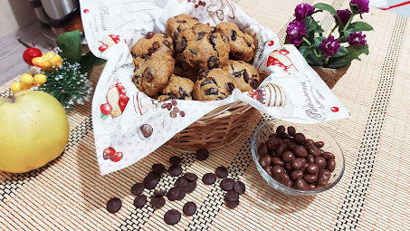 Umutiti maslac sa šećerom u prahu dodati vanilin šećer, jaje brašno i prašak za pecivo. Dodati (čokoladni čips) ili seckanu čokoladu zatim čokoladno suvo groždje i seckane orahe.