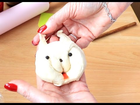 Ostaviti pokriveno da odmori 30 min.. Iseći ga na loptice oko 100 gr. Razviti lopticu elipsasto zaseći ivice sa strane od polovine na gore ne do kraja oko cm širine pa kajiševe prebaciti u vis (to će biti uši).