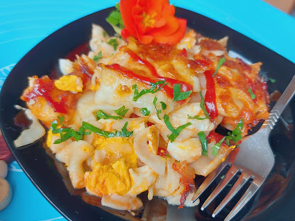 300 gr gotovih flekica100-150 gr kačkavalja2-3 kuvana jajakečapso biber