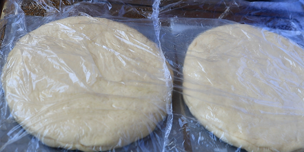 Ostaviti da odmori 30 min. pa ga podeliti na 4 dela, malo ih premesiti i pokriti da odmore . Svaku lopticu razviti veličine 20 cm .