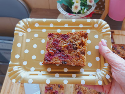 Potrebno je:120 gr griza120 gr brašna100 gr šećera120 gr posnog margarina2 rendane kruške200 gr smrznutog voća (maline, višnje… jagode….)1 kašičica cimeta100 gr suvog groždja1 prašak za pecivo