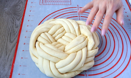 Na sredinu stola poredjati 6 valjka a preko njih takodje 6 valjka ..Pletenje same pogače pogledajte na kanalu nije teško samo treba pažljivo pratiti baku koja to polako radi da bi se shvatilo.