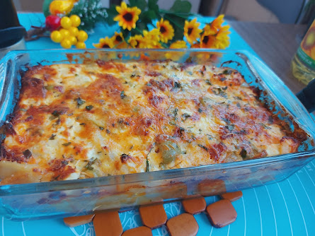 Preko testenine sipati spremljen nadev pa protresti da dodje izmedju testenine. Odozgo dodati malo još mrvljenog sira i rendanog kačkavalja, Peći u rerni na 220 stepeni oko 30 min. Vrhunsko..