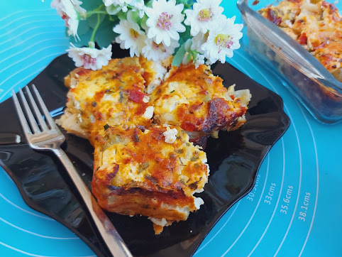 Na kraju ubaciti seckan peršun i mleven biber. Izjednačiti .. Tepsiju podmazati uljem i sipati testeninu i malo je poravnatii.