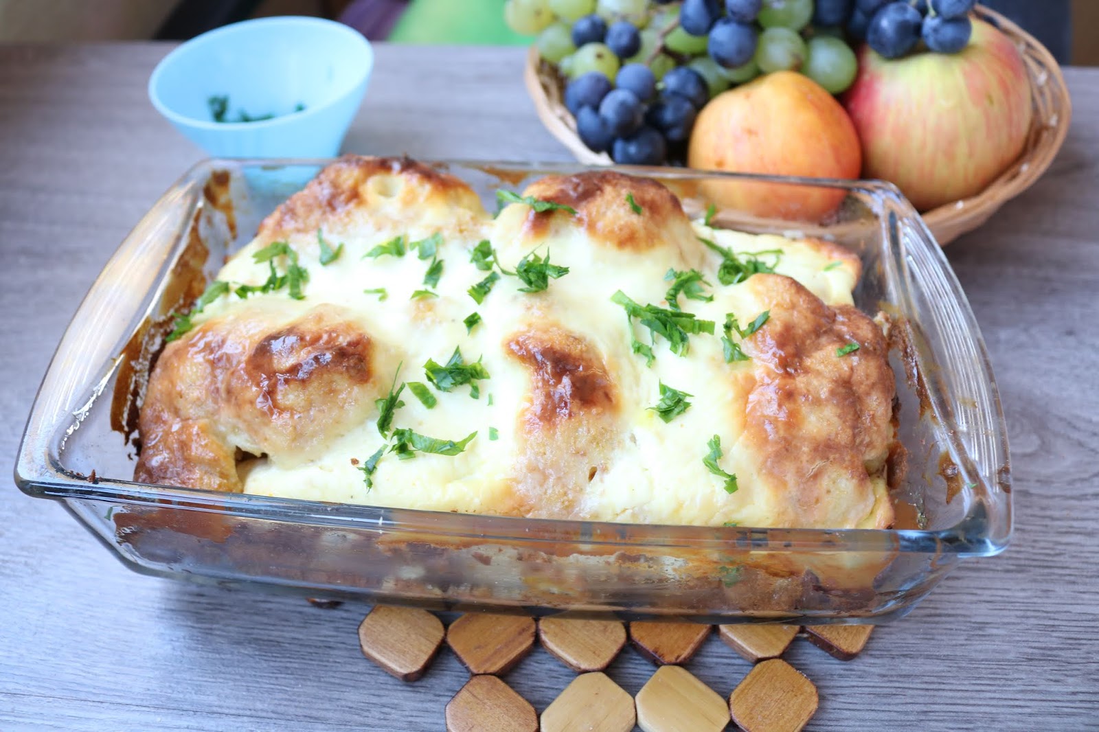 Izmešati pa preliti karfiol. Peći na 200 stepeni C 40-45 min.