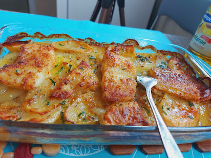 Ako imate neku ribu stavite preko kromira. Pokriti malo aluminijskom folijom a pola sata pred kraj otkite i zapecite da lepo porumeni.Sjajan krompir koji se jede bez hleba
