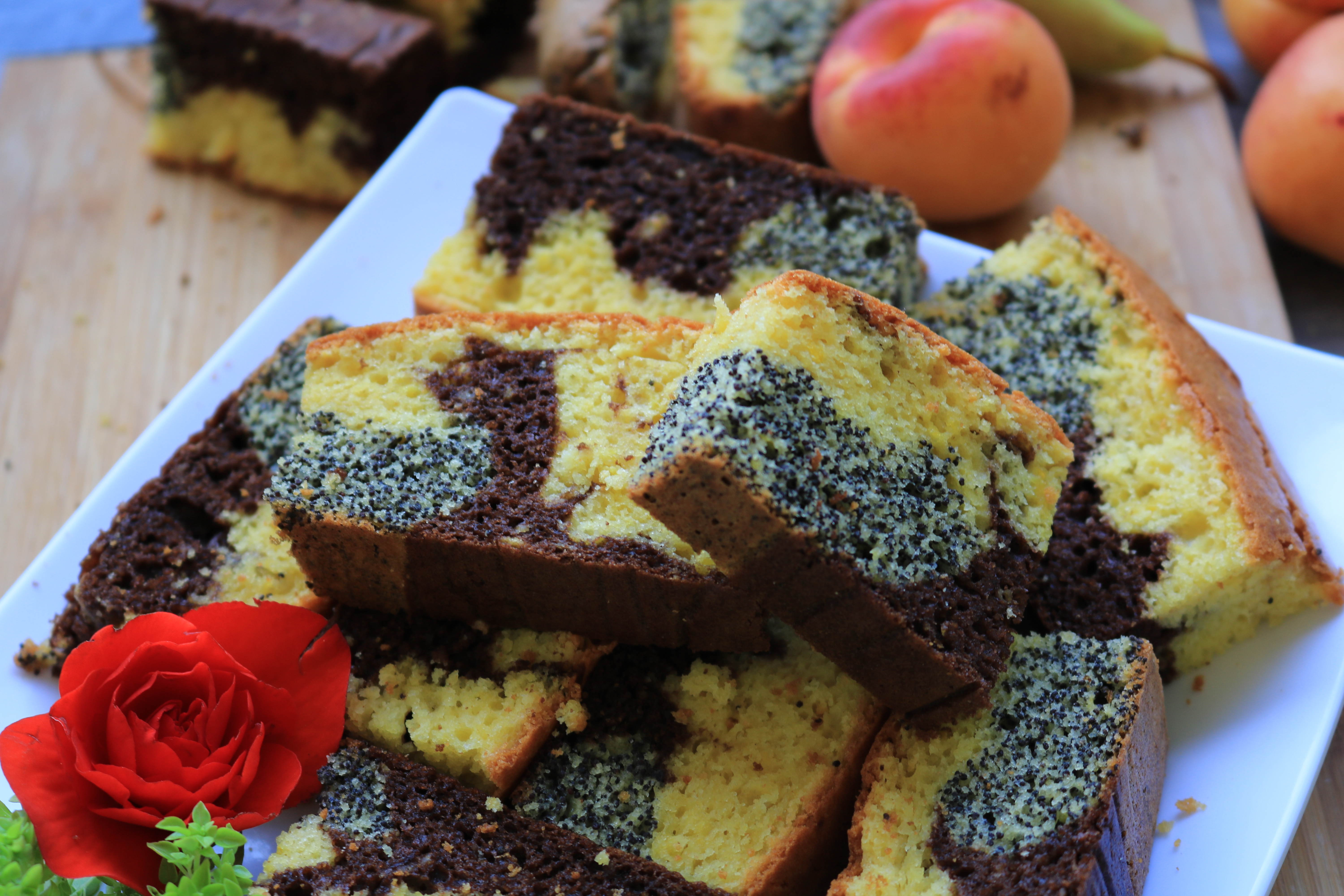 U sredinu staviti čokoladni deo sa strane mak a preko svega žuti deo rasporediti. Peći na 200 stepeni C oko 30-35 mon.