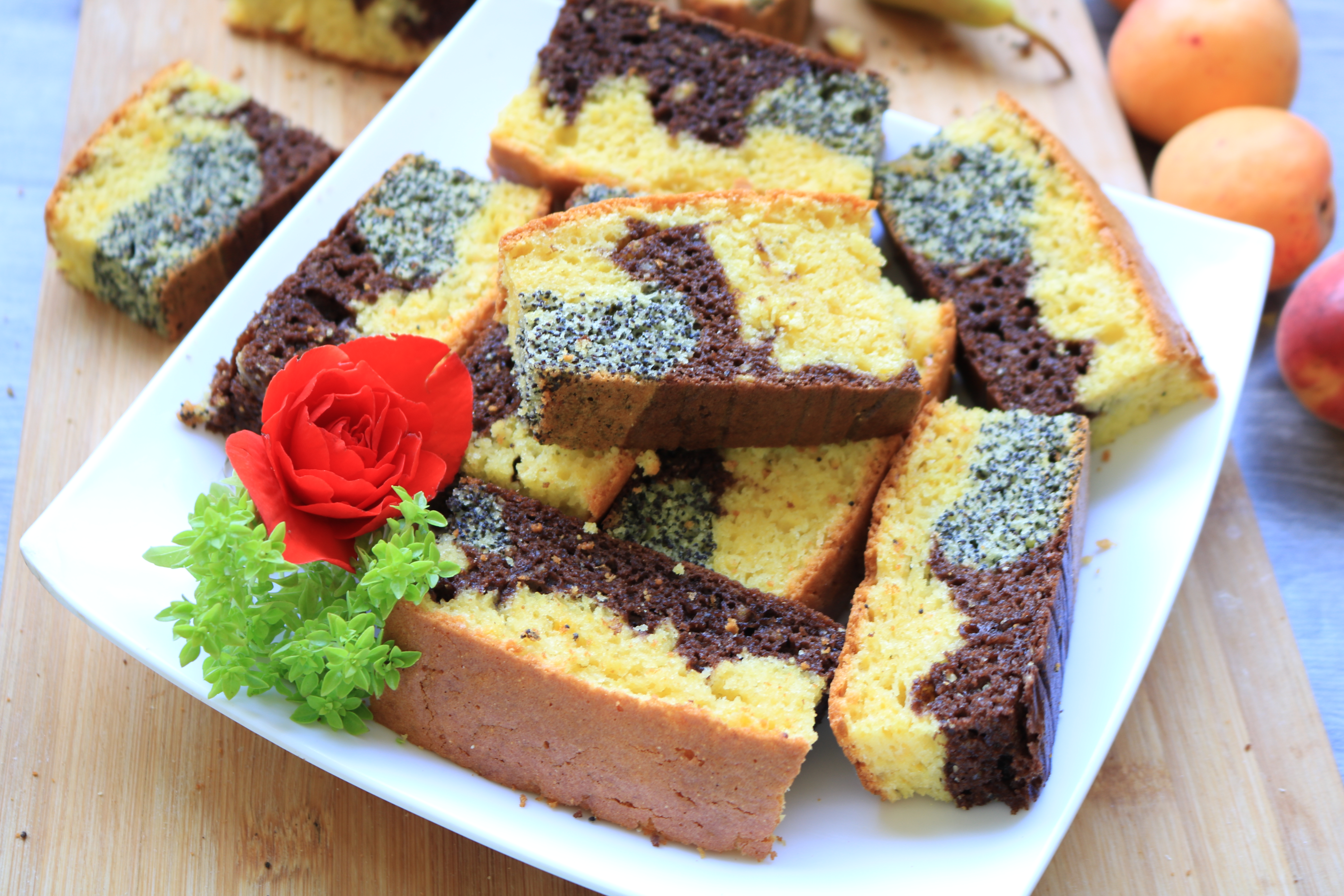 Jedan deo ostaje žut i u njega staviti koricu limuna, u drugi deo kakao a u treći mak. Svaki deo dobro izjednačiti. Pleh 30×20 podmazati maslacom ili obložiti pek papirom.