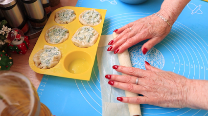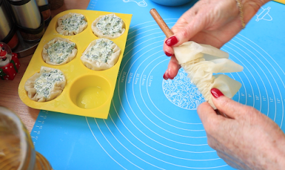 Saviti u krug a kora koja nije savijena staviti u sredinu nadev sdpanaća i zatvoriti krug i staviti u podmazan mafini.