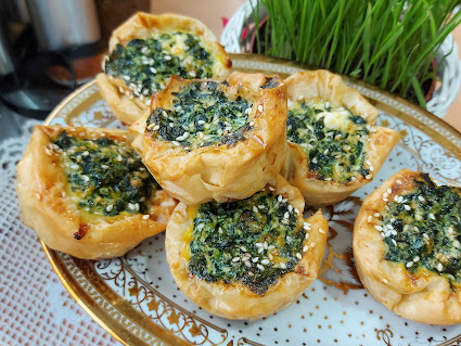 Spanać obariti ocediti i usitniti. Sir izgnječiti dodati jaje i prašak za pecivo. Izjednačiti. Koru pouljiti premazati četkicom, štapić staviti na kraj kore pa je uviti sa korom ostaviti za tri prsta .