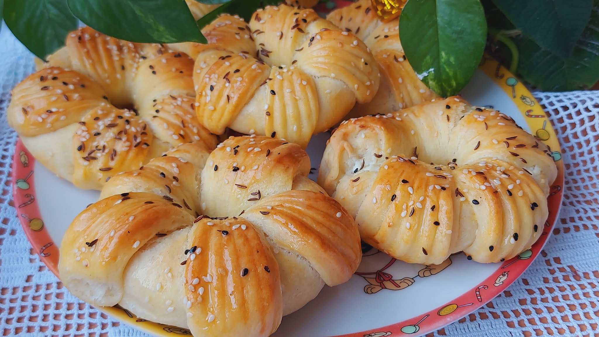 Cvetiće premazati žumancetom i posuti semenkama. Peći oko 40 min. Pokriti krpom da malo odmore. Fini penasti odličnii za užinu večeru.. Uživajte…