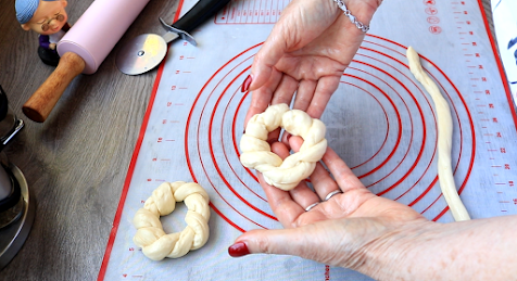 Uviti mali krug od valjka a sa ostatkom testa isprepletati oko kruga praveći venčić.