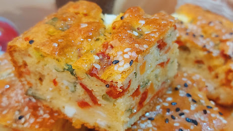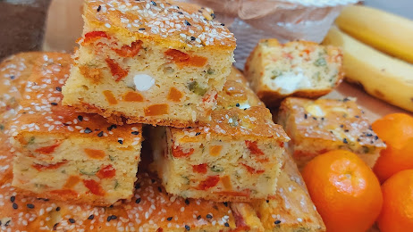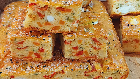 Potrebno je:4 jaja krupnija ili 5 manjih10 kašika belog brašna2 kašike kukuruznog brašna1 prašak za pecivomalo soli2 pečene kisele paprike3 kilela krastavčića1 veća šargarepa barena50 ml. ulja200 ml jogurta200 gr sira fetamala vezica peršunovog lista