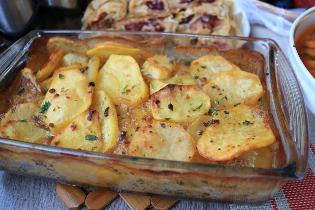 Potrebno je:Krompir 600 gr krompiramalo suvog začinabiberaaleva paprika malo1 kašika belog luka u granulamauljekesica supe sa pečurkama Priprema: Krompir očistiti iseću na na listiće. Dodati malo suvog začina ili soli bibera ulje alevu papriku i izmešati.