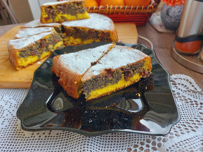 3 jaja100-150 gr šećera150 gr brašna1 prašak za pecivo100 gr mlevenog maka100 gr suvog groždja250 ml jogurta1 kašika kisele pavlake100 ml maslinovog uljamalo cimeta1 vanilin šećer