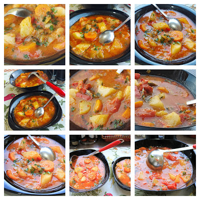 Naliti vodom da ogrezne i kuvati oko pola sata. Pred kraj ubaciti paradajz. Na kraju ubaciti so, biber po želji suvi začin.