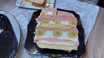 Preko pudinga staviti nasečene banane zatim umućen šlag zatim piškote, puding šlag i piškote.