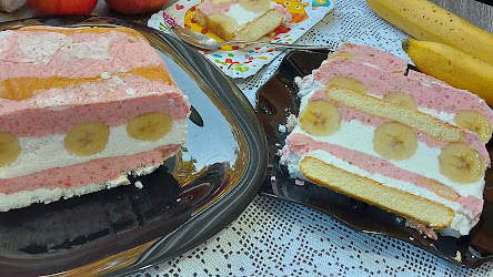 Uzan pleh obložiti prozirnom folijom pa na dno poredjati umočene piškote u sok.