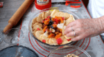 U staklenu posudu staviti sve sastojke, nakon toga ručno umesiti testo, prekriti folijom pa u frižider na pola sata da se smesa stegne.