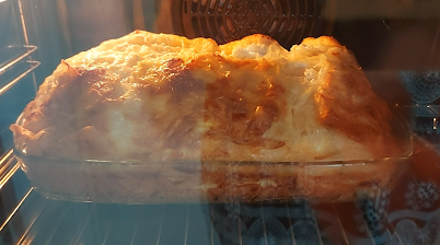 Umutiti jaje dodati mleko i malo ulja. Preliti preko gipanice i peći oko 45 min na 210 stepeni C